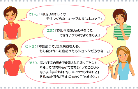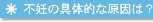 生理不順や流産のほかにも、不妊の原因はあります。『最近、おりものが多いかも。』『小学生の頃、盲腸の手術したなあ。』『若い頃、クラミジアにかかっちゃった。』といった事柄も、実は不妊の原因になるのです。 |