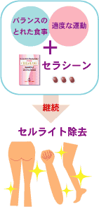 セルライト対策の基本はバランスのよい食事と適度な運動、そしてサプリメント《セラシーン・ゴールド》でサポートすることです。