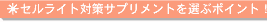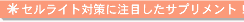 セルライト対策サプリメントはそれぞれの原因に的確に対応できるバランスのとれたブレンドが理想的です。体の生理機能を科学の視点からみつめなおし、体の中からスリミングすることが大切なのです。そして何よりもスリミング成功の秘訣は「継続」することです。 |
