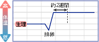 高温期が3週間以上続き、なかなか生理が起こらない場合は、妊娠の可能性があります。高温期が続いた後、体温の低下や出血があった場合は、流産の疑いもあります。 |