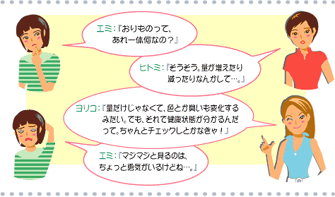 “カッテージチーズ”のような白くポロポロしたおりものが見られ、外陰部のかゆみを伴います。完全に治療しなければ、再発の可能性もあります。 |