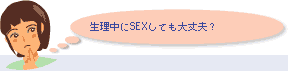 生理中の膣内は、雑菌が繁殖しやすい状態にあります。何らかの形で雑菌が送りこまれると、膣炎を引き起こすこともあるので要注意。生理中のSEXは経血が逆流し、子宮内膜症の原因になることもあります。パートナーにも、この点は理解してもらいましょう。 |