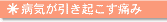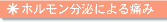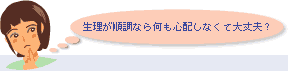 過労やストレスは、激しい生理痛をまねくことがあります。また、“生理は痛いもの”という思いこみが引き金となるケースも。不規則な生活をあらため、精神的にも肉体的にもリラックスすることで、痛みは和らげられます。 |