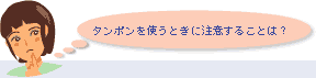 タンポンの長時間使用や出し忘れは、膣炎や骨盤腹膜炎などを引き起こすこともあります。ナプキン並みに取り替え、出血量が少なくなったらナプキンに変えたほうが良いでしょう。吸収力が高いからといって、“頼りっぱなし・入れっぱなし”は御法度です。 |