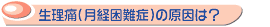 子宮筋腫や子宮内膜症などが原因となる場合。子宮筋腫は、出血量が増え、痛みも激しくなります。子宮内膜症も、年々痛みが強くなり、時には鎮痛剤などが効かないことも。このような症状がある場合は、すぐに産婦人科へ。 |