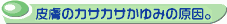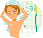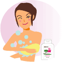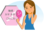 おそらく多くの人が、からだをタオルやスポンジでゴシゴシ洗っていないでしょうか?そうしないとからだの垢が全部落ちていないような気がするものです。しかし、このゴシゴシ洗いが角質層のバリア機能を激しく壊しているのです。角質層が正常な状態に戻るのに2週間から4週間もかかります。正しい洗い方は、洗浄剤を軽く泡立てて手のひらにとり、肌をなでるように洗います。泡がホコリや雑菌を吸着し、濃い洗浄剤が直接肌につくことを防ぎます。また、角質層の古い細胞は入浴時に自然と剥がれ落ちていくものです。 |
