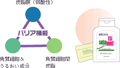 私達の肌にはもともと細菌など外部の刺激から生体を守る防御システムが備わっていますが、一度の入浴で石けんを使うと、皮膚の常在菌のほとんどが流されてしまいます。そして元に戻るまで、一説では12時間もかかるとも言われています。清潔さにこだわって洗浄力の強いもので洗いすぎることは、常在菌叢を破壊し、健康な素肌から遠ざける結果となります。肌のバリア機能を壊さないようにすることが非常に大切なスキンケアのポイントなのです。 |