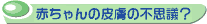 生後すぐの赤ちゃんはたくさん皮脂を出すので、洗浄が不十分だと、顔ににきびのようなものができたり頭に黄色いかさぶたができたりします。周囲が赤くなったり、次第に広がってきます。かゆみはあまりありません。こびりついた皮脂が雑菌や紫外線などで分解されて刺激となり皮膚炎を起こしたりします。かさぶたは無理にはがさず、ワセリンなどをぬって軟らかくしてから、入浴時に洗い流します。清潔にしておくことで防げ、生後2ヶ月頃になると減少してくるので、決して無理にははがそうとしないでおきましょう。 |