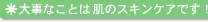 (1)悪化因子を見つけること、(2)正しいスキンケアを行なうこと、(3)必要に応じて薬物療法をきちんと行なうことがとても大切です。薬を塗る場合でも、まず清潔にし、保湿ローションなどで肌をしっとりさせてから薬を塗りましょう。また症状が出ていないときも保湿ケアをしっかり行ないましょう。アトピー性皮膚炎の基本のケアは洗浄と保湿です。 |