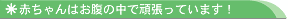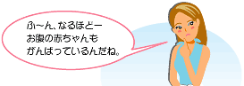 | お母さんのお腹の中にいる赤ちゃんは、一生懸命に世の中に生まれてくるための練習をしています。生まれてから生きてゆくために必要な活動、心臓を鼓動させ、呼吸運動の練習など人間活動の基本をお母さんのお腹の中でほとんどできるように頑張って練習しているのです。お母さんのお腹の中で、赤ちゃんも頑張っているんですね。 |
