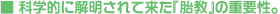 | 赤ちゃんが生まれてきた時、すでに人間としての基本活動ができているということは、(でないと生きてゆけませんよね。)実は赤ちゃんの“脳の神経回路”も新生児と変わらないくらいに進歩しているのです。お腹の中の赤ちゃんも大人と同じように夢を見ている(REM睡眠する)といったことも実証されており、感じて、考え、そして記憶する(学習する)という科学的な解明・実証がどんどん進んでいるのです。 |