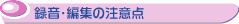 | 録音・編集は、曲によって音が大きくなったり小さくなったりしがち。全曲を通じて、同じボリュームでまとめたいものです。一般的に、ポピュラー、童謡などは大きな音量で録音されているので、録音するときに少しボリュームを下げるようにしましょう。 |