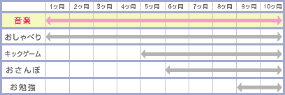 童謡は、赤ちゃんが最も理解しやすい音楽の一つ。曲目は、幼児向けのCDの中から、お母さんが聴いて気持ちよく感じる、音のすがすがしいものを選びましょう。 |